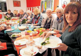 Sennestadt (kris). Als Begrüßungsgetränk gibt es Ayran, das aus Joghurt und Wasser besteht. „Ich mag es besonders mit einem Löffel Salz“, sagt Anna Avagyan. Die gebürtige Armenierin begrüßte gemeinsam mit dem Arbeitskreis Vielfalt des Sennestadtvereins die zwölf Teilnehmer des Themenabends „Sennestädter Wohnzimmergespräche“, das jetzt im Containerdorf für Flüchtlinge stattfand. Thema diesmal: Armenien. Der Tisch im Café „Miteinander“ des Containerdorfs ist reich gedeckt mit allerlei Leckereien. Eine Obstplatte steht neben einem Teller mit Blumenkohl und Peperoni. Auf einem Korb liegt Lawasch, ein ungesäuertes Fladenbrot. Zwei große Töpfe stehen auf dem Herd nahe der Tische, darin Chaschlama, ein traditionelles Gericht mit Kartoffeln, Paprika und Rindfleisch. Bevor die Besucher des Wohnzimmergesprächs aber zu essen beginnen, erzählt Anne Avagyan von sich und dem Staat Armenien, der im Kaukasus zwischen Georgien, Aserbaidschan, dem Iran und der Türkei liegt. Anna Avagyan ist 2015 mit ihrer Familie nach Deutschland gekommen. „Aus gesundheitlichen Gründen des Vaters“, sagt sie. In ihrer Heimat studierte sie BWL, jetzt hat sie eine Ausbildung zur Hotelfachfrau begonnen. Deutsch brachte Avagyan sich nach der Ankunft in Deutschland erst einmal selbst bei – mit dem Handy. Dann folgte ein Sprachkurs. Neben Armenisch spricht sie auch Russisch. Armenien war bis 1991 eine Unionsrepublik der Sowjetunion, noch heute ist Russisch ein Pflichtfach in armenischen Schulen. „Englisch ist aber die wichtigere Fremdsprachegeworden“, sagt die34- Jährige. Nach den Länderinfos erzählte Anna Avagyan von den Essgewohnheiten der Armenier – und das große Schlemmen beginnt. Gemeinsam mit ihrer Mutter hatte Avagyan die armenischen Spezialitäten für die Teilnehmer zubereitet.