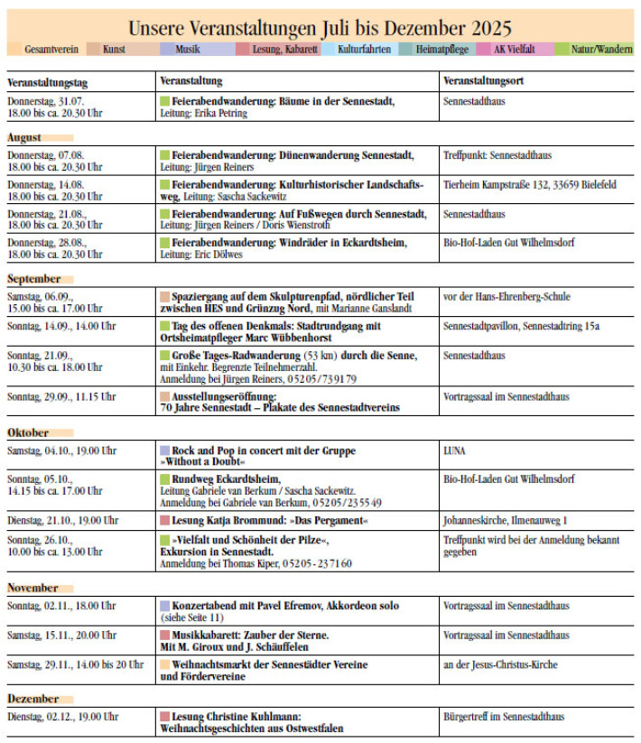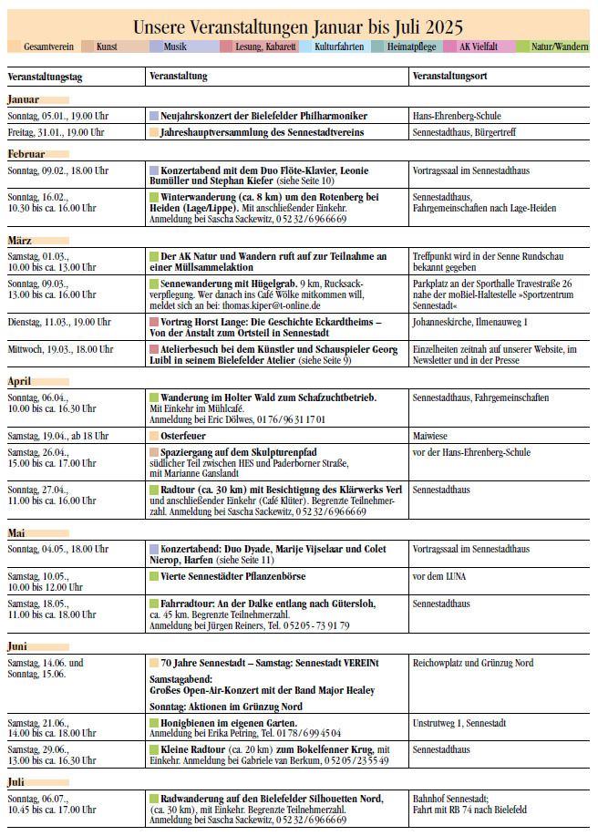 Dies ist eine grobe Terminübersicht von Januar bis Dezember aus dem Mitteilungsheft Nr. 77